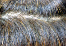 カールのようなくせ毛ではなく一本一本がちじれています。見た感じは、フレーキングを起している状態の髪質です。 |